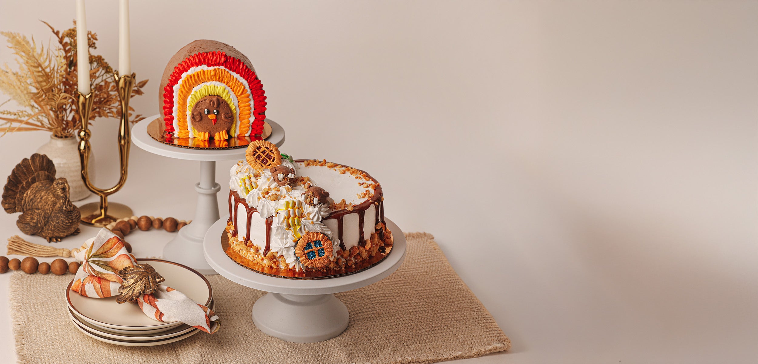 Give your oven a break and let us handle dessert! Our Tom the Turkey and Thanksgiving Feast ice cream cakes are the sweetest way to end your meal.