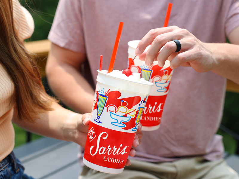 Two scoops of mint chocolate chip ice cream, Milk or Dark Chocolate Hard Cap, and Halloween sprinkles. Available through Friday, October 31st.