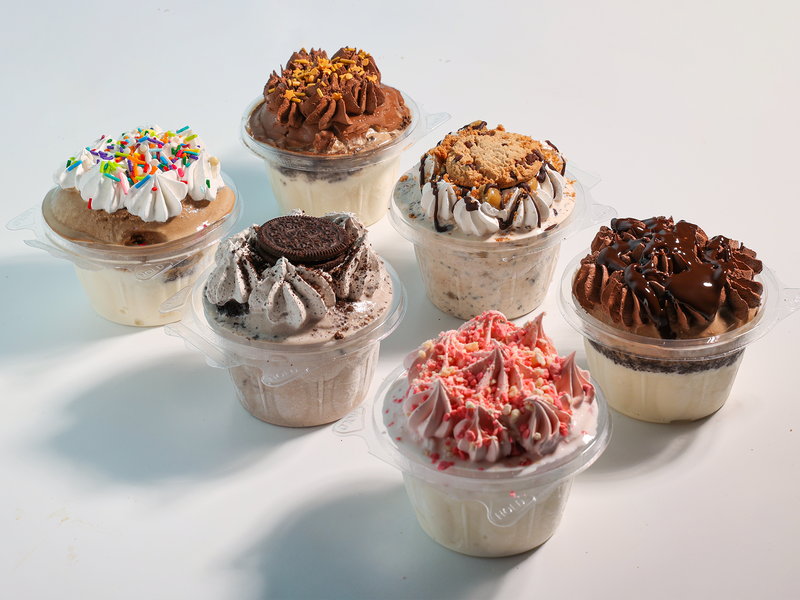 Creamy chocolate chip ice cream blended with mini peanut butter cups for a sweet and nutty treat.